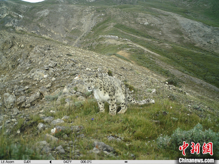 資料圖為2021年8月24日,西藏自治區(qū)那曲市境內(nèi),由紅外相機(jī)拍攝到的雪豹活動(dòng)影像。 中新社發(fā) 山水自然保護(hù)中心 供圖