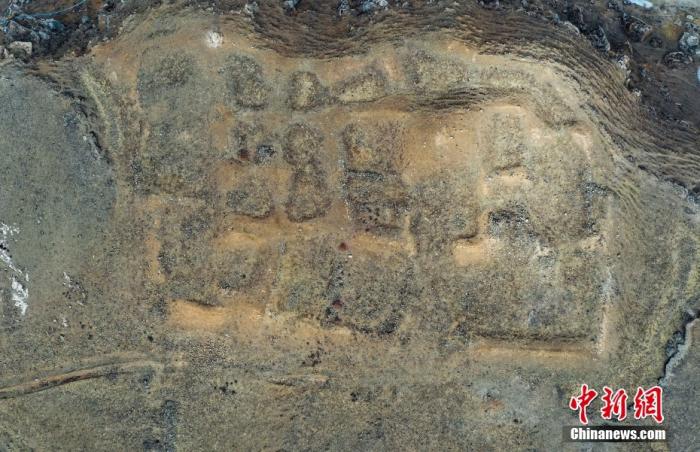 圖為1月19日拍攝的西藏拉薩市堆龍德慶區(qū)德慶鄉(xiāng)邱桑村邱桑溫泉所在的古遺址。(無人機(jī)照片) 中新社記者 貢嘎來松 攝