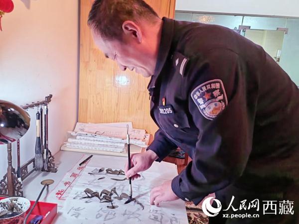 李振華在練習(xí)書法。 人民網(wǎng) 李海霞攝