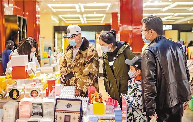 游客在購(gòu)買《文成公主》系列文創(chuàng)產(chǎn)品。