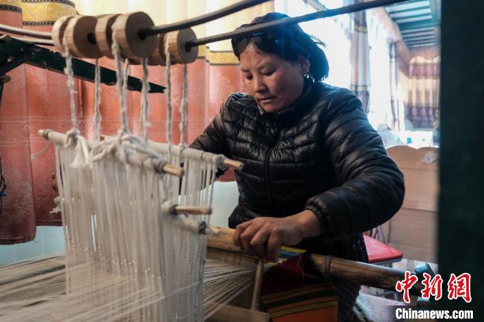 在他們家,記者看到了幾臺(tái)傳統(tǒng)藏式織機(jī),玉珍說,這是用于織邦典(藏式毛織圍裙)的工具。2016年開始,玉珍運(yùn)用編織技藝帶領(lǐng)村里的婦女共同成立了一個(gè)小規(guī)模的編織廠,“我們的羊毛線是自己染的,織出來的邦典質(zhì)感更好,也不愁銷路,為家里增收不少?!彼f,編織讓大家實(shí)現(xiàn)了家門口就業(yè),也不耽誤家務(wù),村里人很樂于接受。