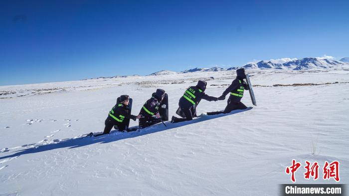 又經(jīng)過2個(gè)多小時(shí)的艱難跋涉,巡邏隊(duì)終于抵達(dá)目的地點(diǎn)位??辈臁㈢P雪、描紅……一個(gè)環(huán)節(jié)也不能出錯(cuò),界碑就是生命,就是戍邊人的信仰。