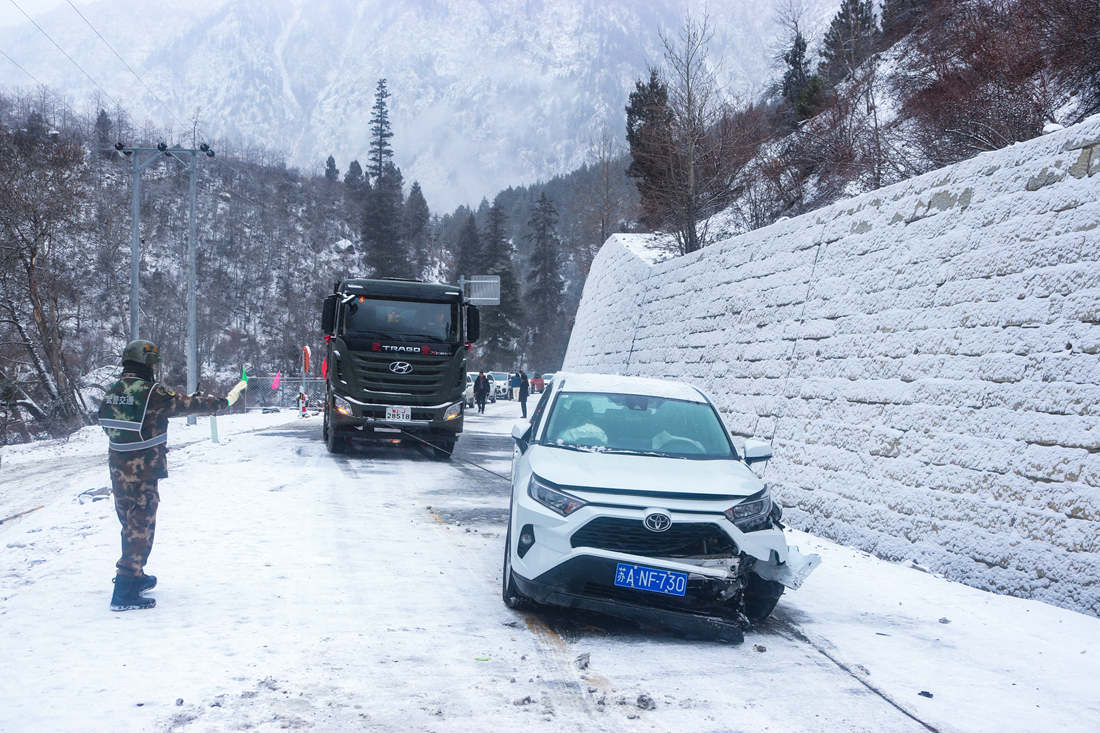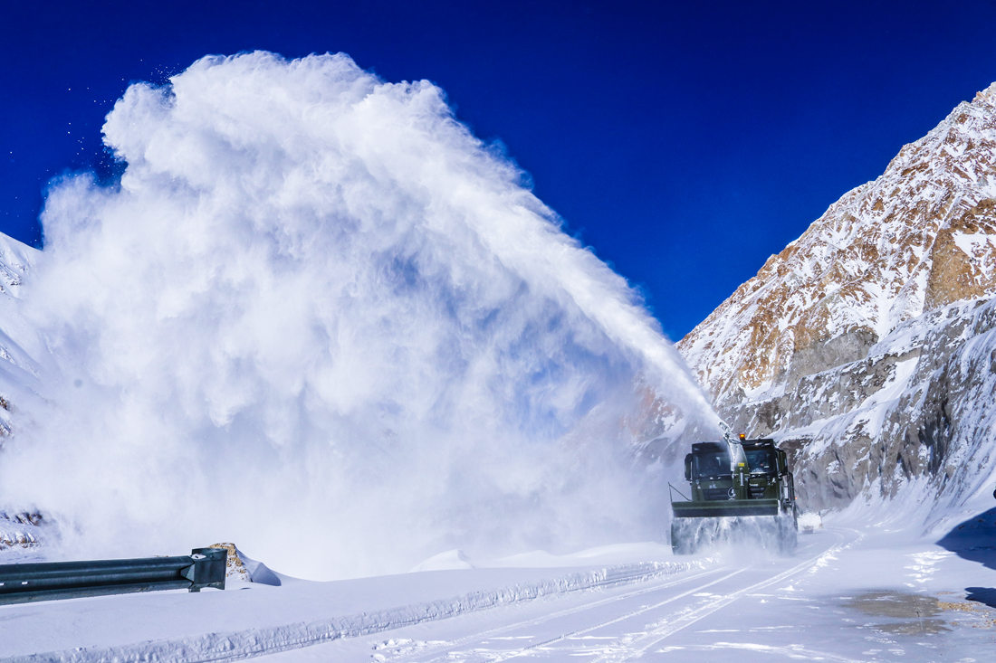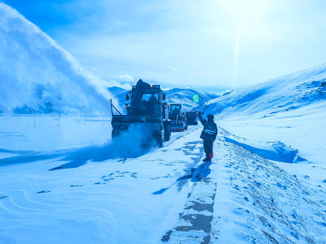 因?yàn)?zāi)害現(xiàn)場(chǎng)地處平均海拔4000多米以上海拔,持續(xù)降雪不斷,加之氣溫低至零下20多攝氏度,給整個(gè)道路搶通工作帶來(lái)了不少難度。為盡快清理路面積雪搶通道路,武警官兵采取“人歇機(jī)不停、分段搶通、先通后拓”的方法進(jìn)行全力搶通,克服了高寒缺氧及紫外線(xiàn)強(qiáng)烈等重重困難。