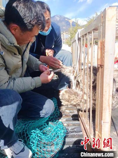 經(jīng)現(xiàn)場查看并向群眾了解,雪豹闖入開朗村一戶村民家院子試圖捕食家畜,村民發(fā)現(xiàn)后進(jìn)行驅(qū)趕,雪豹在逃離過程中被院子周邊網(wǎng)圍欄困住??紤]到雪豹性情兇猛、攻擊性強、周圍群眾較多的實際,為避免雪豹受驚嚇對群眾造成傷害,工作人員對雪豹進(jìn)行麻醉救護(hù),并運送至林芝市野生動物收容救護(hù)站作全面身體檢查。