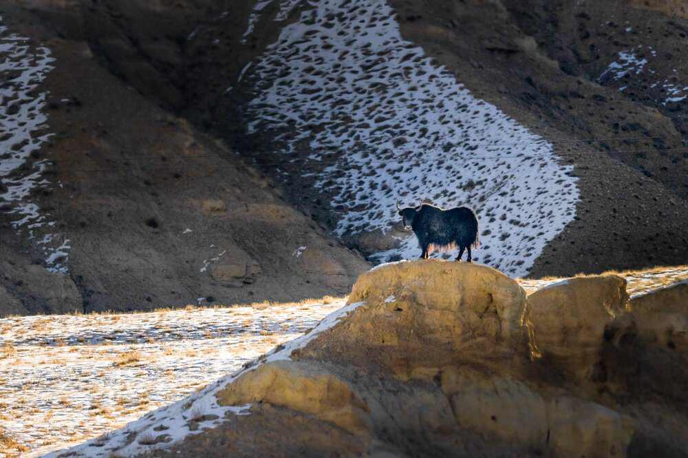 日土縣境內(nèi)國道216旁野牦牛。