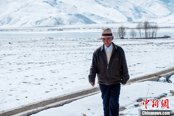 2月23日,在旦增所在的拉薩市林周縣卡東村附近的虎頭山水庫(kù),中新社記者看到,上百只黑頸鶴在雪地里休閑覓食,田間也傳來(lái)聲聲鶴鳴。