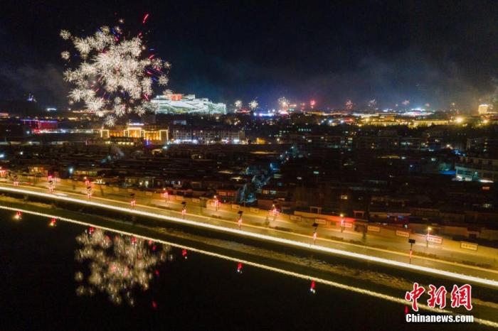 3月1日是藏歷12月29日,按照藏族傳統(tǒng)習(xí)俗,當(dāng)天晚上藏族家家戶戶吃“古突”(一種面食,包有不同寓意的各種餡料),迎接藏歷新年。圖為“古突”之夜,西藏拉薩布達拉宮周邊煙花璀璨。 中新社記者 江飛波 攝