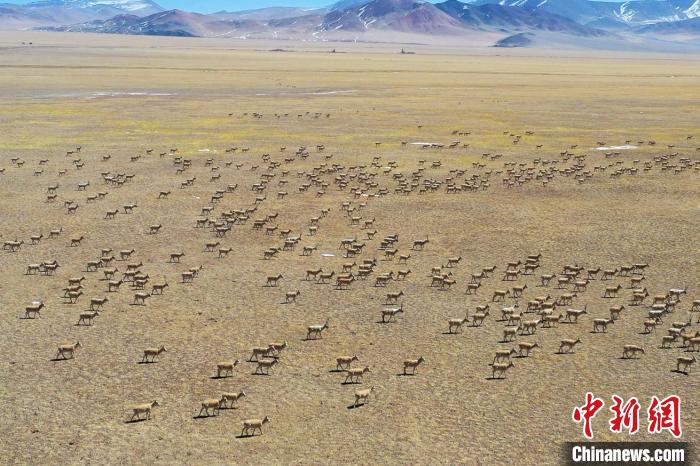 圖為3月27日,西藏改則縣先遣鄉(xiāng)附近的藏羚羊種群。邊巴 攝
