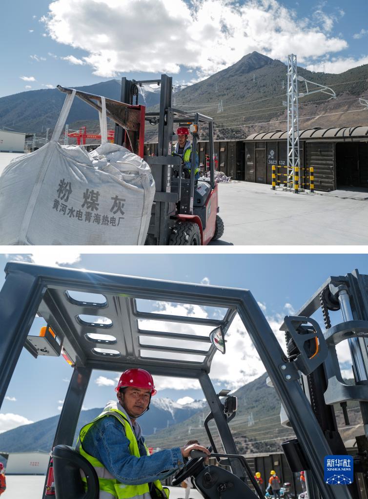 拼版照片:上圖為3月29日,邊巴在林芝站貨場(chǎng)搬運(yùn)貨物;下圖為邊巴在駕駛叉車(chē)。朵當(dāng)村的村民邊巴跟人合伙開(kāi)了一家物流公司,將抵達(dá)火車(chē)站的飼料、日用百貨、建筑材料等運(yùn)往林芝各地,他每天都會(huì)通過(guò)微信召集周邊的年輕人來(lái)貨場(chǎng)干活。邊巴說(shuō),他對(duì)未來(lái)充滿希望,拉林鐵路貨運(yùn)量不斷增加,自己和村民的收入會(huì)越來(lái)越好。新華社記者 洛卓嘉措 攝
