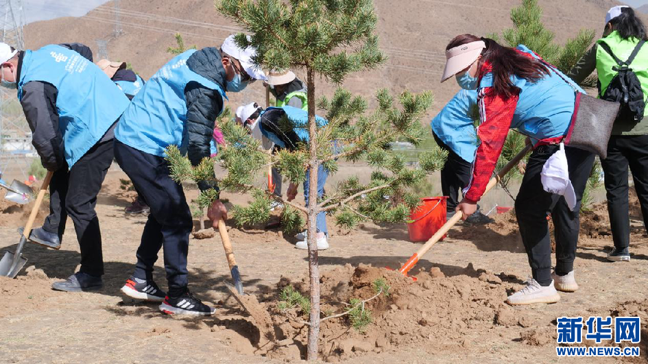 圖為植樹活動現(xiàn)場(4月16日攝)。新華網(wǎng)發(fā) 貢桑央吉(實習生)攝