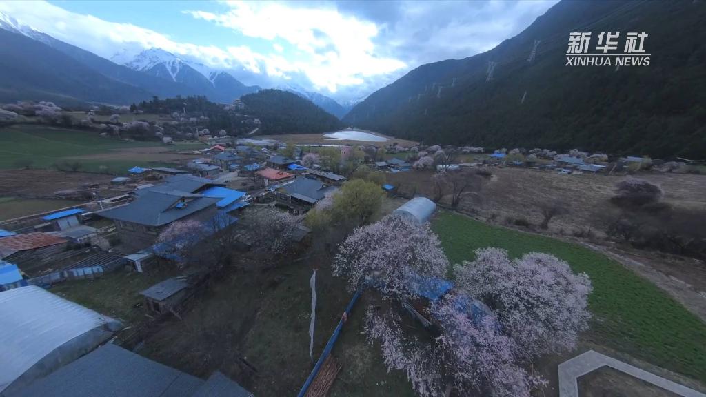 西藏林芝市波密縣擁有青藏高原最大的冰川聚集地。每年春天,桃花盛開,宛如一片片粉色祥云縈繞著村莊。