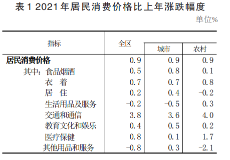 全年全區(qū)居民消費(fèi)價格比上年上漲0.9%。商品零售價格上漲1.5%。工業(yè)生產(chǎn)者出廠價格上漲1.5%。