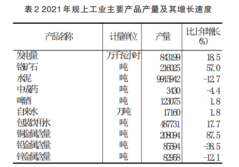 全年規(guī)模以上工業(yè)企業(yè)水泥產(chǎn)量991.59萬噸,比上年下降12.7%;鉻礦石21.60萬噸,增長57.0%;中成藥(藏醫(yī)藥)3430噸,下降4.4%;自來水1.72萬噸,增長1.8%;發(fā)電量84.32億千瓦時,增長18.5%;啤酒12.31萬噸,下降1.8%;包裝飲用水48.77萬噸,增長17.7%。