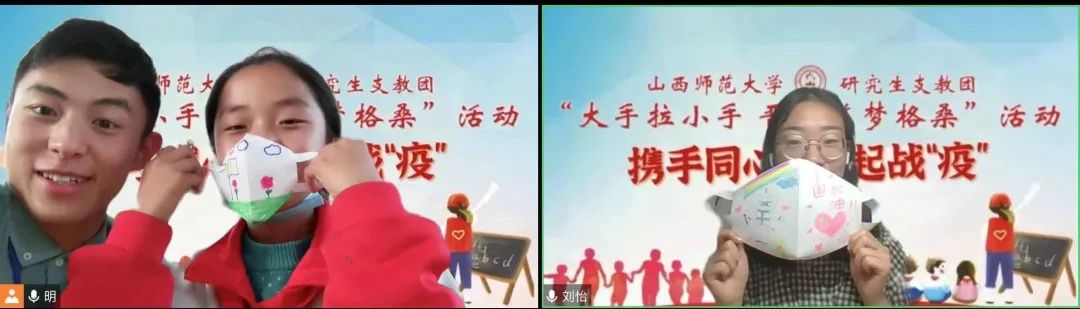 連線中,孩子們主動(dòng)關(guān)心我校志愿者的在校情況,孩子們充滿關(guān)切的眼神讓志愿者們紛紛動(dòng)容。志愿者們也向孩子們?cè)敿?xì)的介紹了防疫自護(hù)知識(shí),結(jié)合視頻、圖片等形式生動(dòng)講述了團(tuán)結(jié)一心、眾志成城的抗疫故事,向所有抗疫英雄們致敬,同時(shí)引導(dǎo)孩子們要深刻認(rèn)識(shí)到作為一名中國(guó)人的幸福,勉勵(lì)孩子們永遠(yuǎn)要團(tuán)結(jié)在一起,共克時(shí)艱,遠(yuǎn)在西藏也要做好防護(hù),一字一句中滿是擔(dān)心和牽掛。隨后,孩子們拿出早已準(zhǔn)備好的工具與志愿者們一同制作了口罩,口罩上寫滿了對(duì)哥哥姐姐的關(guān)心、祝福,天真可愛的臉龐上寫滿了戰(zhàn)勝疫情的決心。連線最后,孩子們將精心準(zhǔn)備的才藝表演給志愿者們,是鏗鏘有力的《少年中國(guó)說》,是活潑動(dòng)人的《給你一個(gè)擁抱》,是真誠(chéng)溫暖的《聽我說謝謝你》,或許是那不太流暢的表達(dá)、不太連貫的動(dòng)作,讓遠(yuǎn)隔3700公里的傳遞更加有了溫度,讓兩顆互相牽掛的心靠的更近。