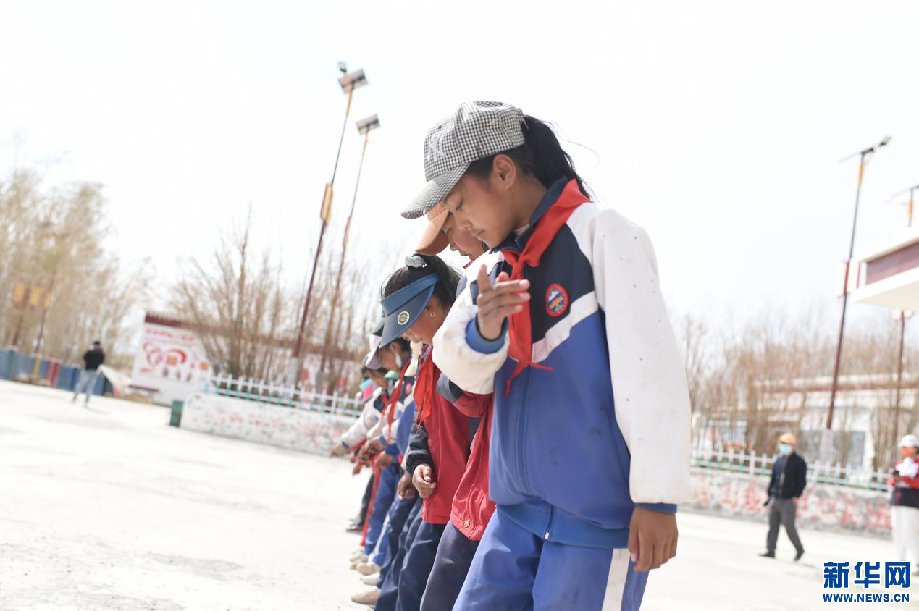 多油村中心小學(xué)的學(xué)生在表演傳統(tǒng)非遺舞蹈(4月21日攝)。新華網(wǎng) 旦增努布攝