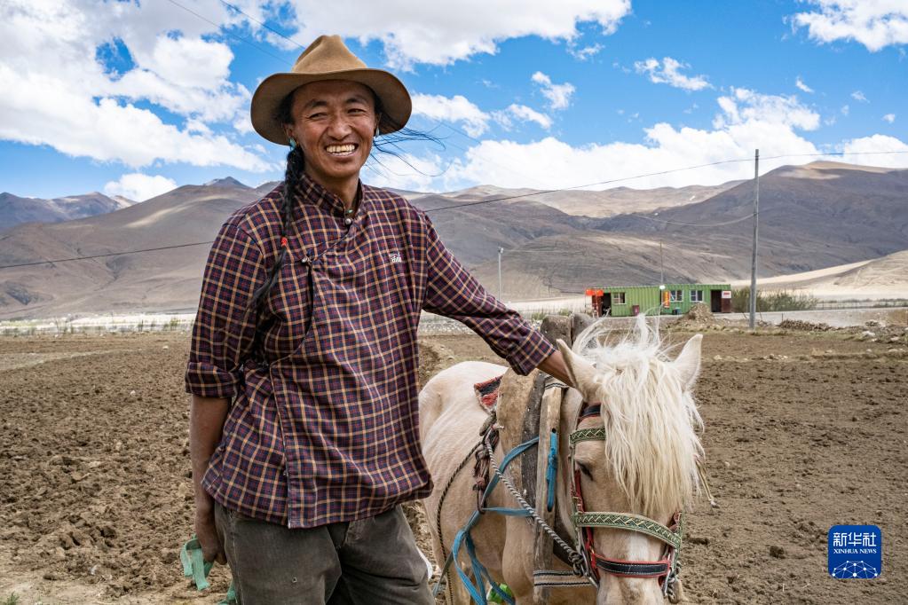 西藏定日縣扎西宗鄉(xiāng)日白拉新村的村民在犁地(5月10日攝)。新華社記者 劉潁 攝
