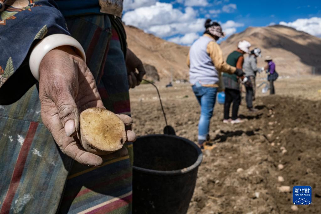 西藏定日縣扎西宗鄉(xiāng)日白拉新村的村民在播種土豆(5月10日攝)。新華社記者 孫非 攝