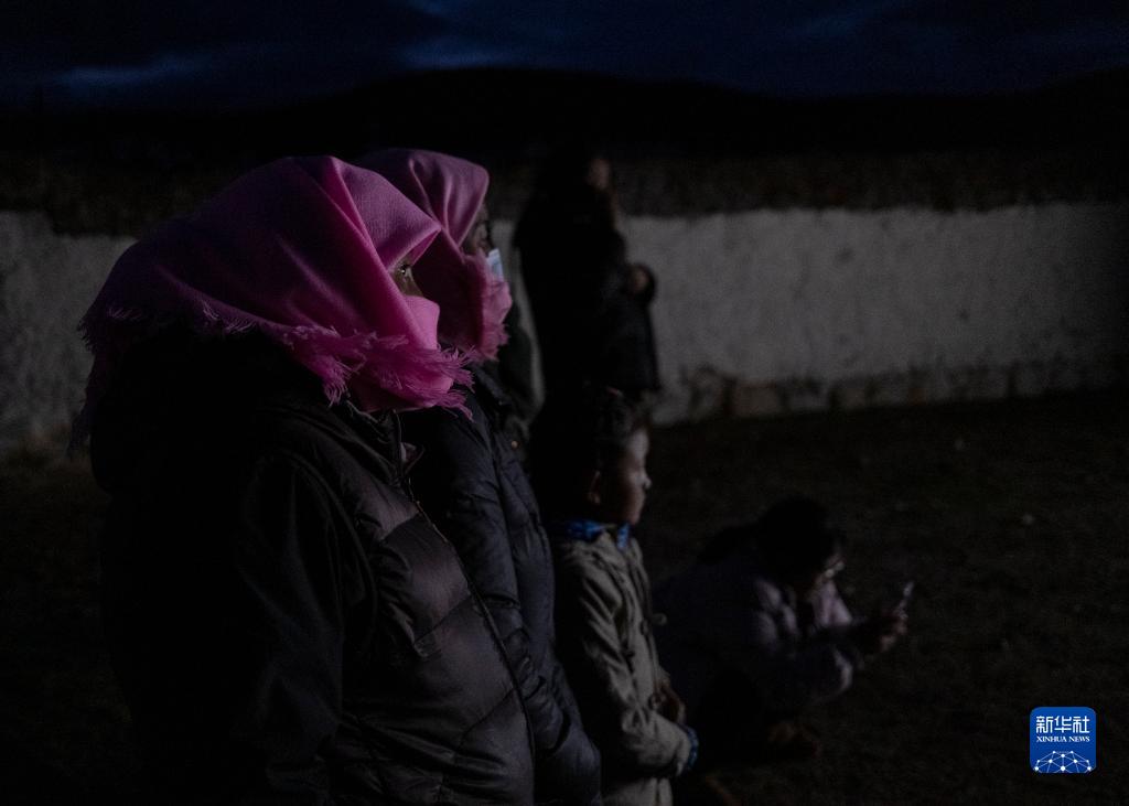 西藏當雄縣巴靈村的村民在看電影(5月20日攝)。新華社記者 孫非 攝