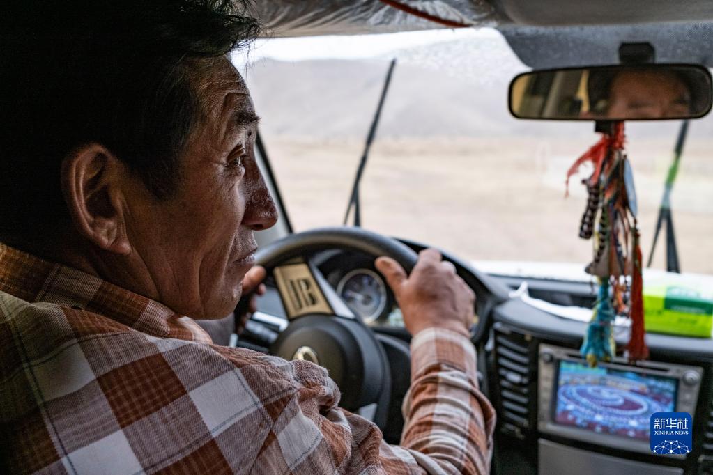 羅珠在開車前往鄰近的巴靈村(5月20日攝)。新華社記者 孫非 攝