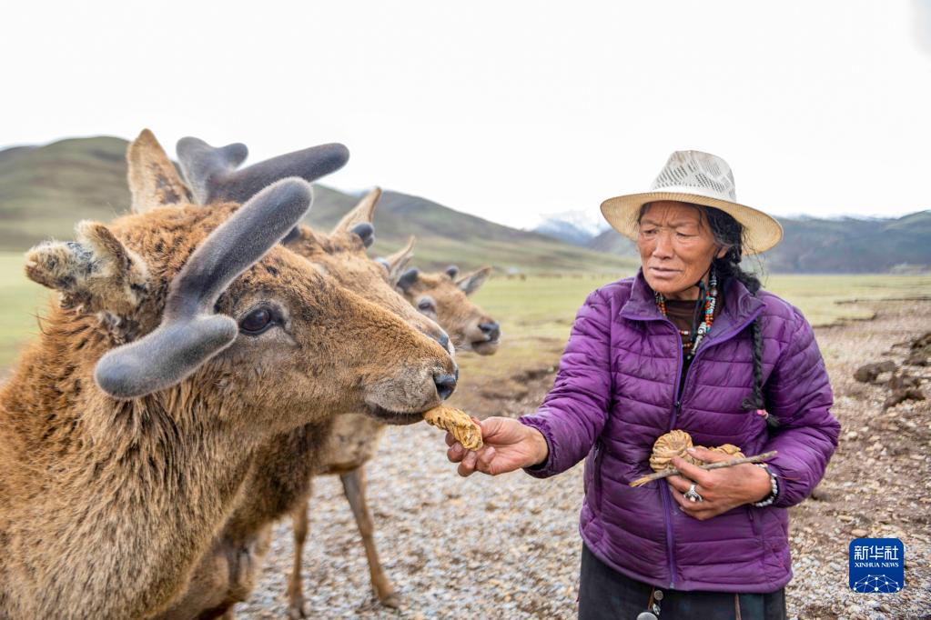 20世紀70年代,家住昌都市類烏齊縣長毛嶺鄉(xiāng)協(xié)塘村的向秋拉姆發(fā)現(xiàn)并照顧了3只離群的小馬鹿,從此與馬鹿結(jié)緣。40多年來,向秋拉姆悉心照料數(shù)百只馬鹿。目前,她的兩個兒子延續(xù)著照顧馬鹿的使命。