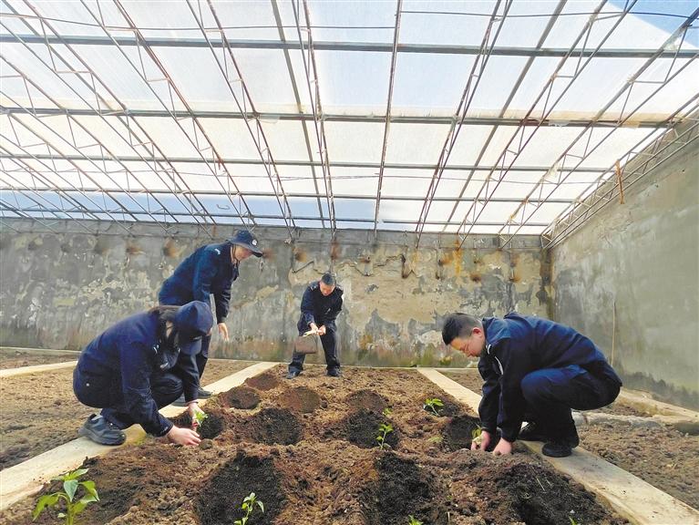 圖為日喀則市康馬縣薩瑪達邊境派出所民警在陽光棚里種菜。 記者 趙文慧 通訊員 黃偉媛 攝