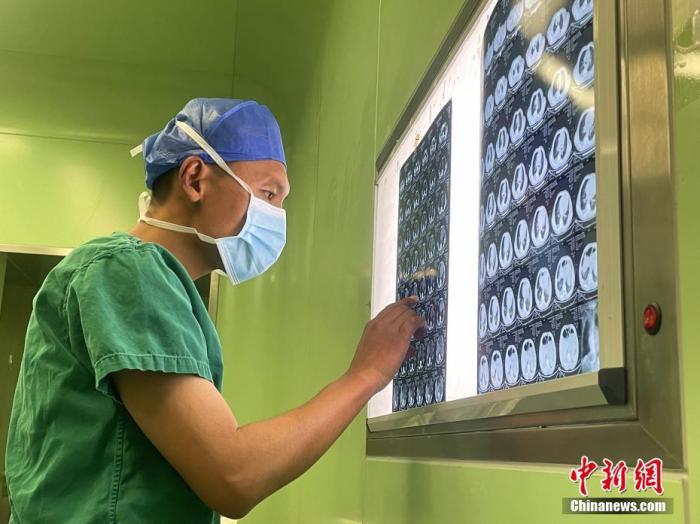 圖為5月7日,次仁云丹在拉薩查看患者資料。 中新社記者 冉文娟 攝