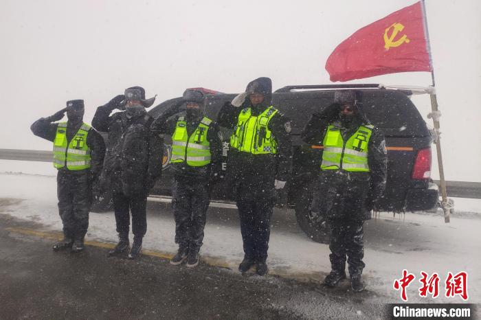 安多交警常年堅(jiān)守在國(guó)道109線唐古拉山段。安多縣公安局交警大隊(duì) 供圖