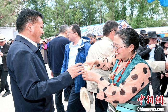 6月10日下午,西藏日喀則貢覺(jué)林卡公園內(nèi),人們載歌載舞,洋溢著節(jié)日的氛圍。為了慶祝2022年文化和自然遺產(chǎn)日,由日喀則桑珠孜區(qū)人民政府主辦,桑珠孜區(qū)文化和旅游局、桑珠孜區(qū)商務(wù)局承辦的2022第二屆“桑珠孜有禮”·非遺藝術(shù)節(jié)暨桑珠孜區(qū)特色產(chǎn)品展示展銷活動(dòng)宣告正式啟動(dòng)。