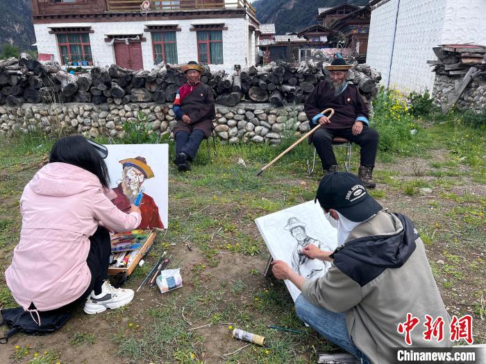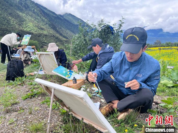 圖為西藏大學(xué)藝術(shù)學(xué)院的學(xué)生正在戶外寫生。共青團(tuán)西藏自治區(qū)委員會供圖