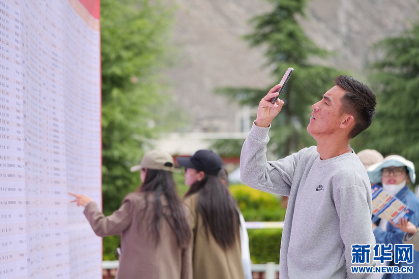 6月15日,應(yīng)屆畢業(yè)生在招聘會上尋找適合自己的崗位。新華網(wǎng) 旦增努布攝