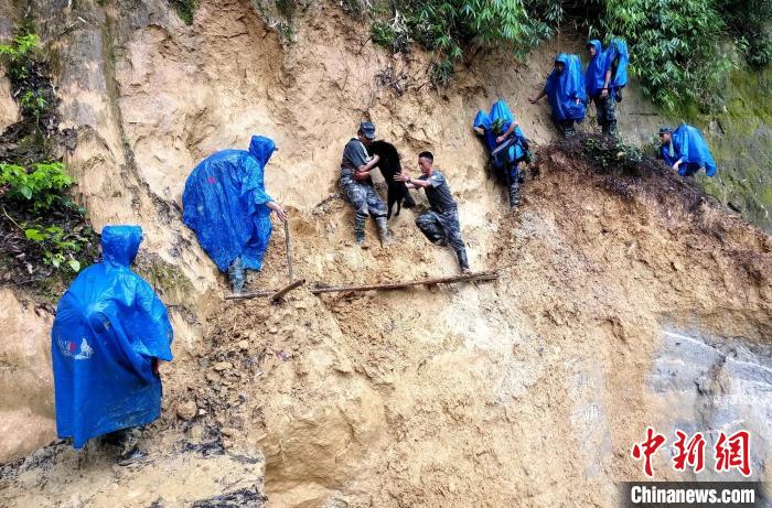 圖為巡邏官兵通過塌方區(qū)。馬軍 攝