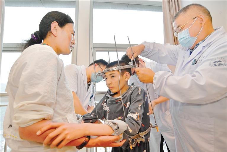 教育“走出去”取得成功的同時,醫(yī)療幫扶也同樣創(chuàng)造了奇跡。2020年8月,經(jīng)援藏工作組對接協(xié)調(diào),蕭山區(qū)中醫(yī)院在色尼區(qū)啟動“抬頭挺胸·重塑脊梁”圓夢行動。曾因脊柱嚴(yán)重畸形、身高僅有135厘米的藏族小伙尼瑪扎西來杭免費(fèi)治療半年后,奇跡般地長高了22.3厘米。截至目前,已有25位像尼瑪扎西這樣的患者得到救治,挺起了人生的脊梁。
