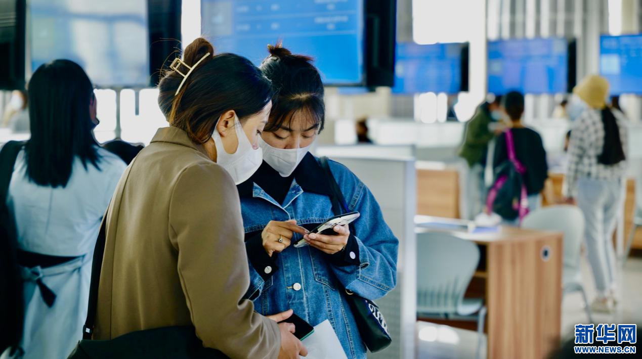 6月24日,應(yīng)聘者在使用自助查詢機(jī)填寫資料。新華網(wǎng) 柑丹鴦琦 攝