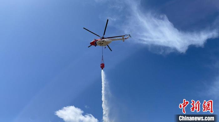 圖為吊桶灑水。西藏森林消防總隊林芝支隊 供圖