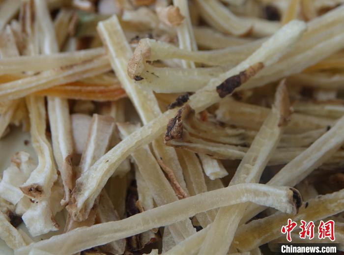 圖為由波密藏天麻制作而成的天麻絲?!∪轿木?攝