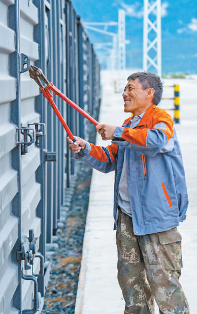 依托鐵路發(fā)展貨運,不僅降低了運輸成本,還讓一些人找到了努力的方向。將貨物裝上叉車后,裝卸工尼瑪調(diào)轉(zhuǎn)車頭,再把貨物整齊地碼放在一側(cè)的卡車上,操作行云流水,相當熟練。平措豎起了大拇指:“看到旁邊的大吊車沒有?尼瑪正準備考證。要是考過了,工資又能長不少!”