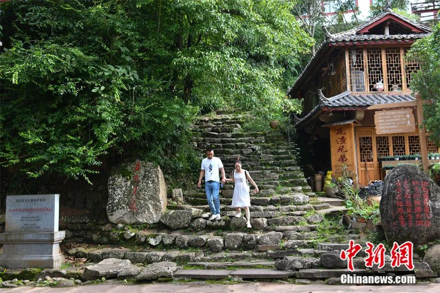2022年6月,云南省普洱市寧洱縣那柯里村,游客走在茶馬古道遺址上體驗(yàn)。中新社記者 劉冉陽(yáng) 攝