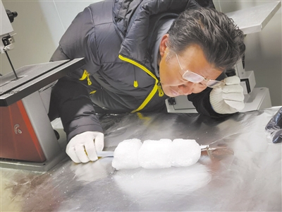 中國科學(xué)院青藏高原研究所研究員徐柏青在拉薩冰芯庫測量分析樣品受訪者供圖