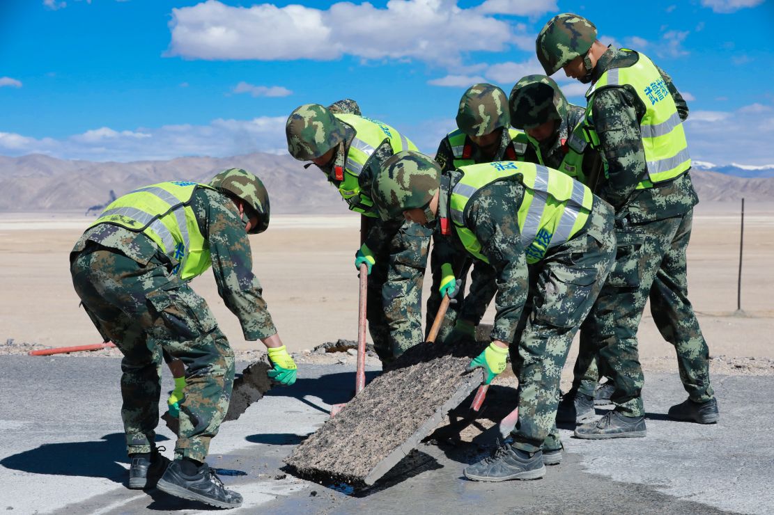 對此,該支隊(duì)充分利用新疆當(dāng)季天氣較好時(shí)機(jī),在新藏公路新疆段600多公里道路進(jìn)行病害集中治理,官兵們分別在庫地達(dá)坂、麻扎達(dá)坂、黑卡子達(dá)坂、奇臺達(dá)坂等多個(gè)病害點(diǎn)展開工作。