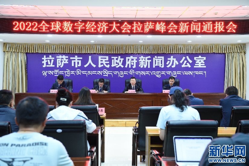 2022全球數(shù)字經(jīng)濟(jì)大會(huì)拉薩峰會(huì)新聞通報(bào)會(huì)現(xiàn)場(7月21日攝)。新華網(wǎng) 旦增努布攝