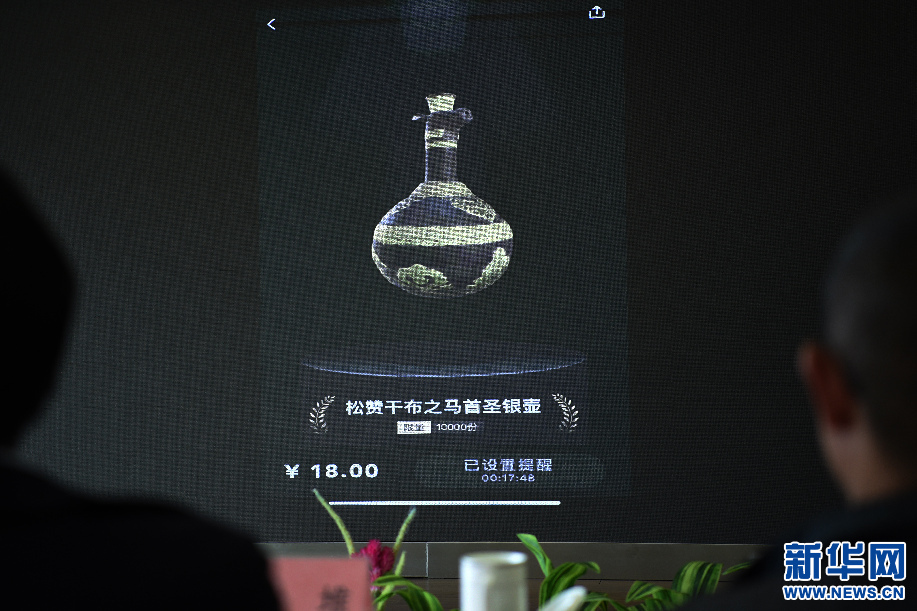 7月21日,用戶在手機端預(yù)約搶購西藏首個數(shù)字藏品《松贊干布之馬首圣銀壺》。新華網(wǎng)旦增努布 攝