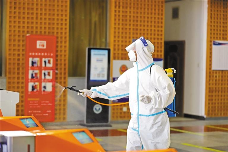 圖為拉薩火車站工作人員開展消殺工作。記者 袁海霞 通訊員 李海星 攝