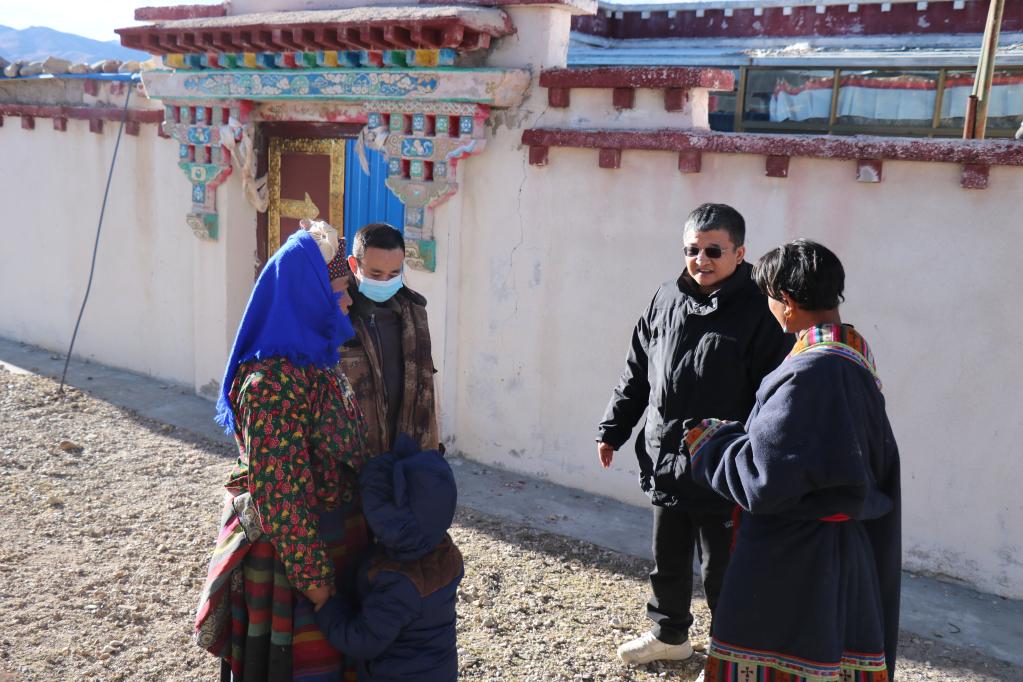 王軍強(右二)在申扎縣巴扎鄉(xiāng)結對幫扶戶達吉家中了解生活情況。(圖片由申扎縣委宣傳部提供)