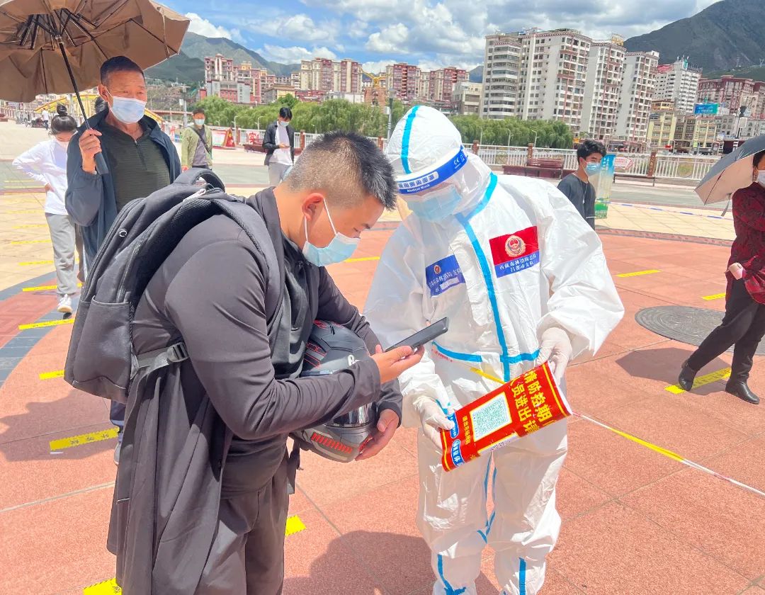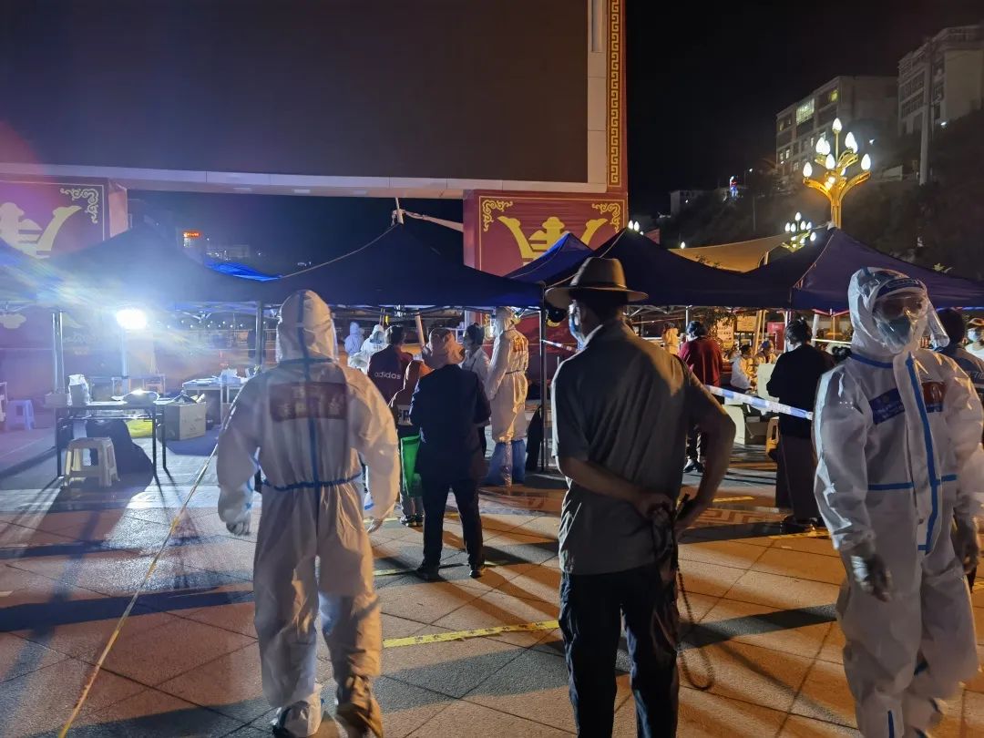 “為了您的安全,請保持1米以上間隔,謝謝?!蓖砩?點多,在茶馬廣場,支隊三級消防士張興梁,依然堅守在抗疫一線,維持著排隊做核酸的長隊。從早上7點開始,張興梁和其他消防隊員已堅守了14個多小時?!拔鞑貢円箿夭钐卮?,白天防護服里面衣服都濕透了,但是到晚上這個點已經干了,正好不用換衣服了?!睆埮d梁打趣的說到。