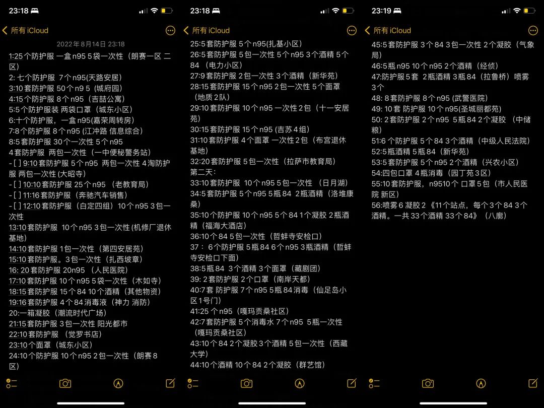 8月14日的凌晨,疲憊不堪的貢秋丁達(dá)和西繞拉翁正準(zhǔn)備在車(chē)?yán)镄菹ⅲ@時(shí)電話鈴聲響了,“你好,是貢秋丁達(dá)嗎?剛才接到通知,嘠瑪貢桑街道北社區(qū)需要運(yùn)輸防護(hù)服10套,N95口罩10個(gè)?!薄笆盏?!”貢秋丁達(dá)回復(fù)道。強(qiáng)忍著身體的疲憊,貢秋丁達(dá)和西繞拉翁重新打起了精神,向著目的地再次進(jìn)發(fā)。