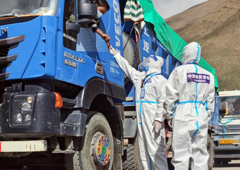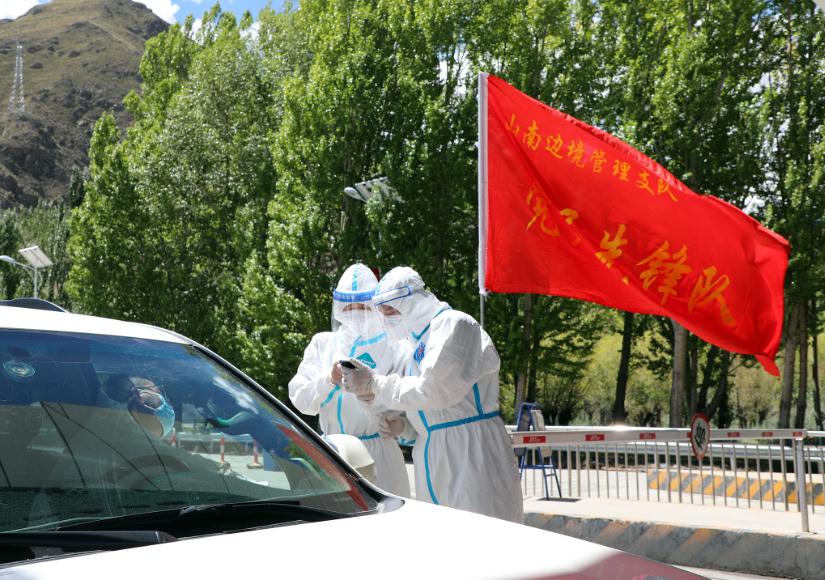 圖為西藏山南邊境管理支隊機關“黨員先鋒隊”移民管理警察在查驗人員核酸檢測報告。徐道超 攝