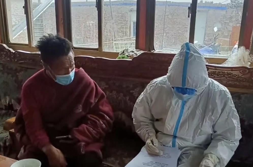 強(qiáng)聶村平均海拔4500米左右,由于當(dāng)?shù)厥羌兡羺^(qū),村民居住并不集中,這給全員核酸檢測工作帶來了很大的不便,而村里的醫(yī)務(wù)人員又十分緊缺。得知此消息后,次仁第一時間帶領(lǐng)駐村工作隊員配合村兩委和村里的醫(yī)務(wù)人員,義無反顧地在組織召喚的第一時間,便抵達(dá)“戰(zhàn)場”,用行動牢牢守住強(qiáng)聶村抗疫的第一道防線。