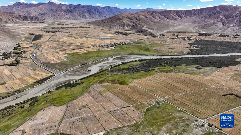 年楚河流域西藏日喀則江孜段富饒的農(nóng)田(9月19日攝 無人機(jī)照片)。