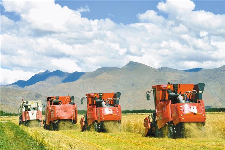 日喀則市東南部的白朗縣,是聞名區(qū)內(nèi)外的“青稞之鄉(xiāng)”。白朗縣積極主動做好秋收各項保障工作,第一時間組織工作組調(diào)查摸排縣域內(nèi)農(nóng)機保有量,平衡農(nóng)機需求,有序調(diào)配流轉(zhuǎn)秋收農(nóng)機器具。累計調(diào)配大型收割機33臺、中小型收獲機械1.02萬臺,訂購和調(diào)運農(nóng)機配件1.56余萬件,做到農(nóng)機器具高效統(tǒng)籌調(diào)度、全部動用起來。積極協(xié)調(diào)秋收農(nóng)機器具用油,采取集中加油與送油上門相結(jié)合的方式,累計供給秋收用油30余萬公升,保障農(nóng)機具持續(xù)運轉(zhuǎn)。