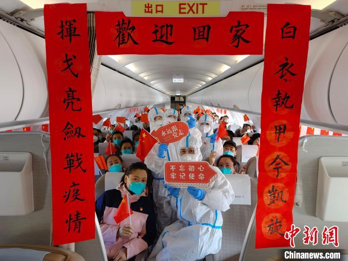 在MU7134航班上,乘務(wù)長李玉娜用客艙廣播深情告白:“尊敬的白衣天使,您們好!我是本次航班的乘務(wù)長,我謹(jǐn)代表中國東方航空公司全體機(jī)組成員向您致以最誠摯的問候:你們辛苦了,歡迎回家!你們用醫(yī)者仁心踐行了醫(yī)務(wù)工作者最質(zhì)樸的擔(dān)當(dāng);你們用實際行動給予了人民看得見的守護(hù)和摧不垮的信心。40天前,我們護(hù)送你們出征,如今東航如約而至,迎接你們平安回家!”客艙里頓時響起了熱烈的掌聲。
